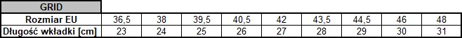 Przy wyborze rozmiaru prosimy pamiętać, aby do długości stopy dołożyć odrobinę zapasu (5-10 mm).